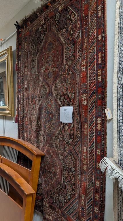 Lot 705: Oriental Wool Rug. Brown, Orange And Teal. 7'6" X 5'6".
