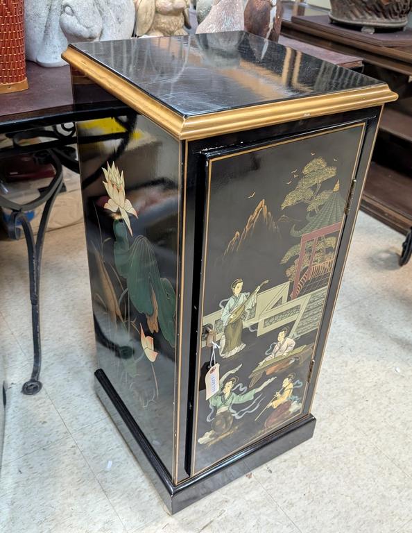 Lot 712: Asian Black Lacquered Single Door Cabinet.