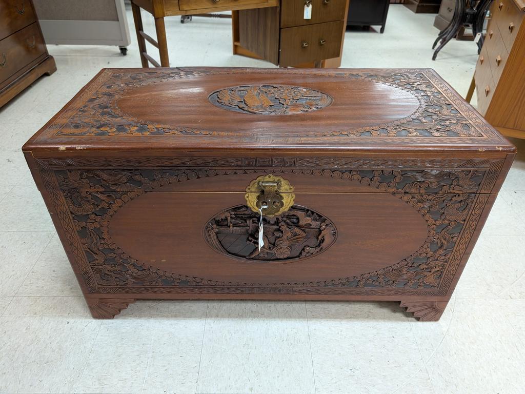 Lot 717: Oriental Carved Wood Camphor Chest.