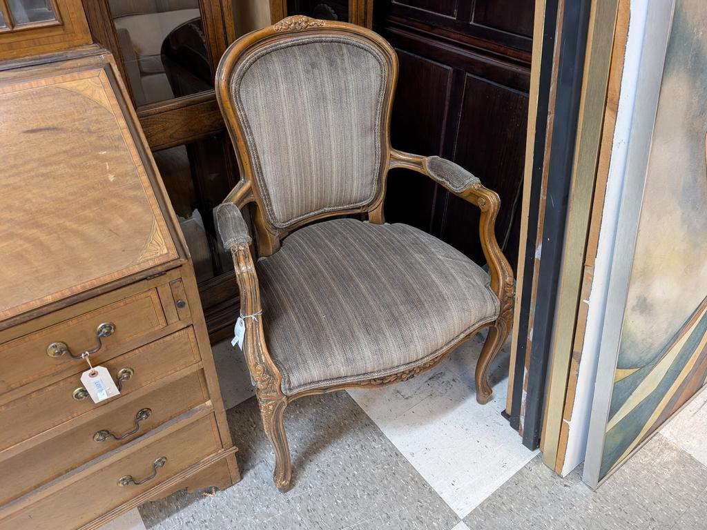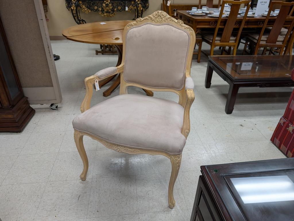 Lot 719: Provincial Style Armchair With Suede Upholstery.