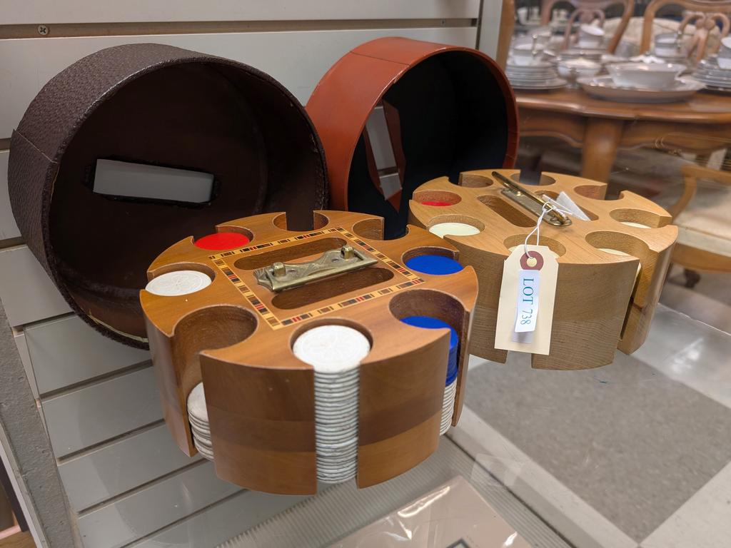 Lot 738: (2) Poker Chip Sets With Revolving Bases.