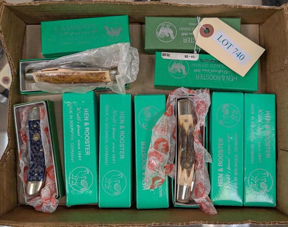 Lot 740: Group Of (11) Hen & Rooster Folding Knives In Boxes.