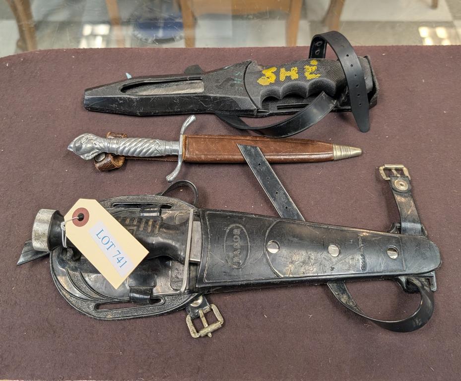 Lot 741: (2) Divers' Knives And Decorative German Dagger.