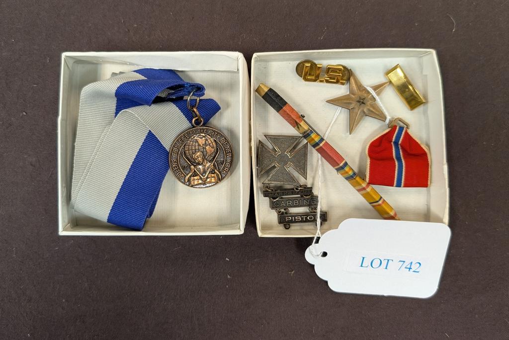Lot 742: Small Group Of Medals And Pins Incl. Marksman.