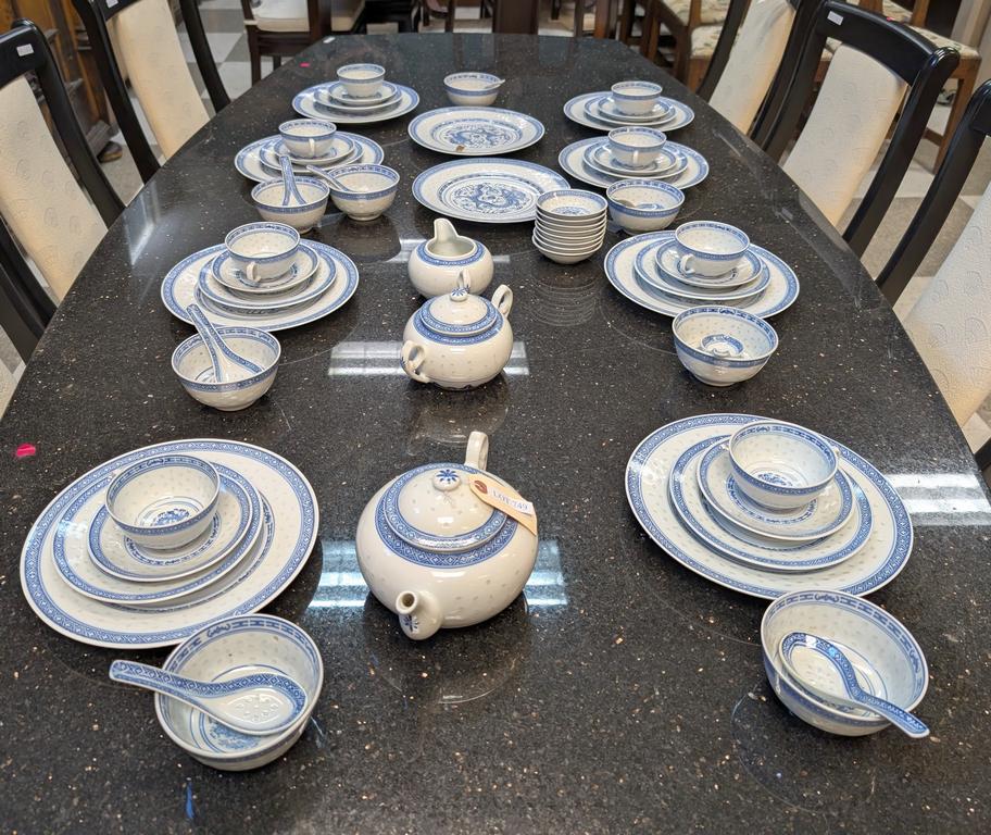 Lot 749: Oriental Blue And White Porcelain Dinner Service With Dragon Design.