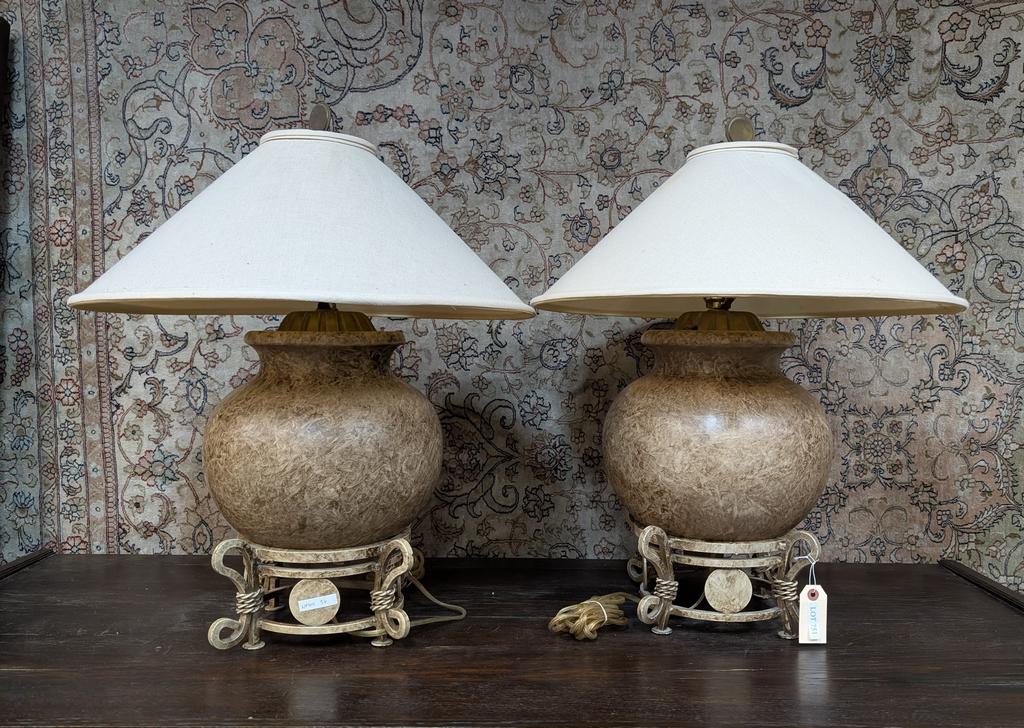 Lot 752: Pair Of Contemporary Ceramic Vasiform Table Lamps With Metal Base.