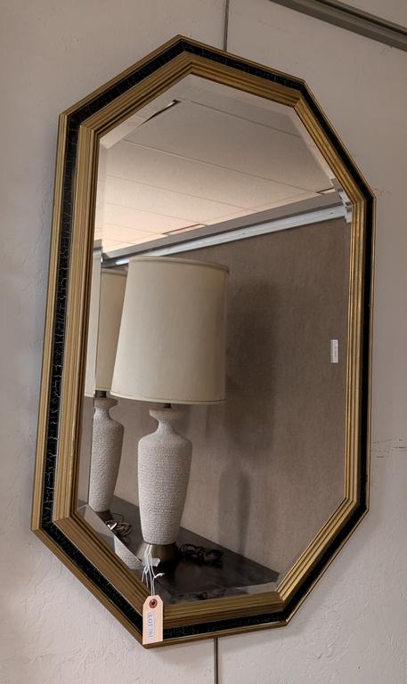 Lot 761: Black And Gilt Framed Octagonal Beveled Mirror. 40" X 26".