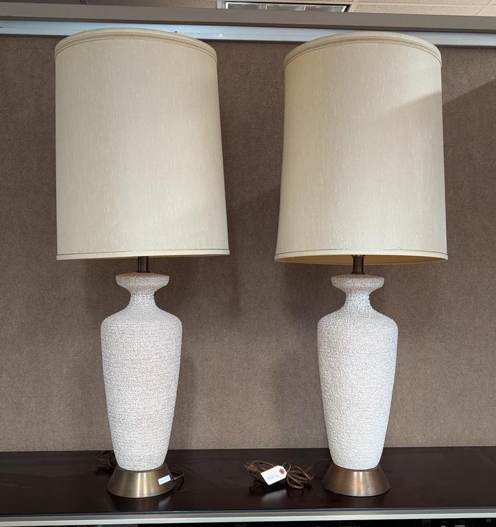 Lot 765: Pair Of Textured Ceramic White Table Lamps.