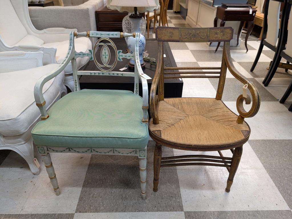 Lot 766: George Iii Style Painted Armchair And A Rush Seated Chair.