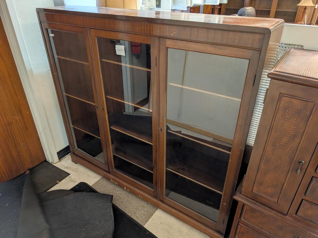Lot 770: Mahogany 3-Door Glass Front Bookcase.