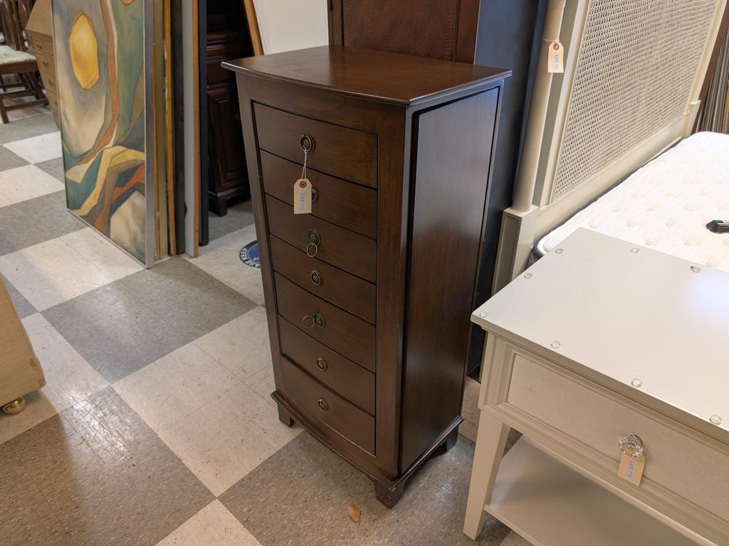 Lot 772: Contemporary Mahogany Floor Standing Jewelry Chest.