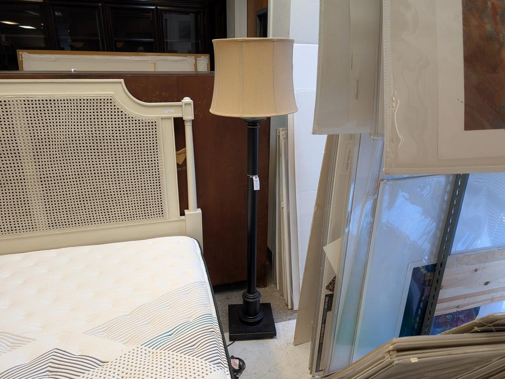 Lot 774: Contemporary Black Metal Floor Lamp With Gilt Edging.