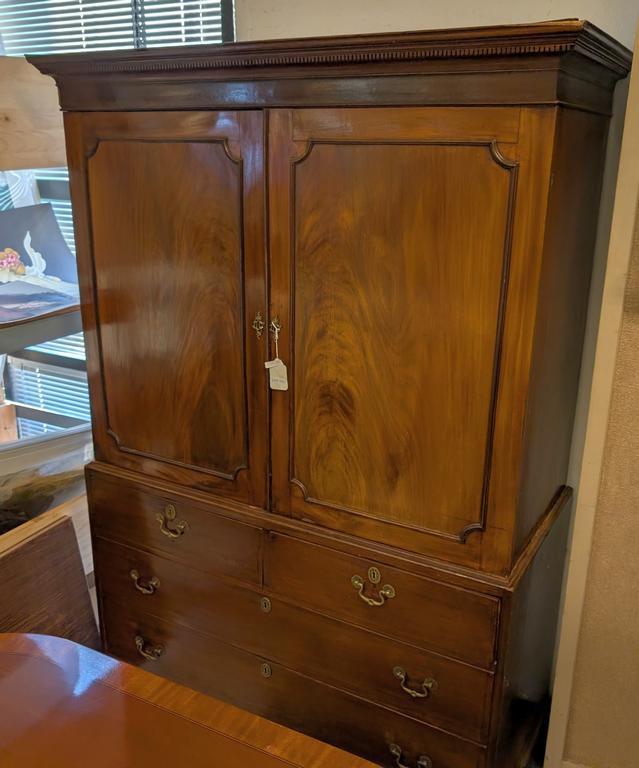 Lot 777: Circa 1910 Flame Mahogany Linen Press
