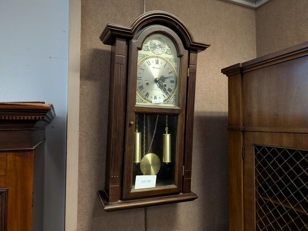 Lot 780: Parliament Wood Cased Wall Clock. 31 Day, Time, Chime & Strike.