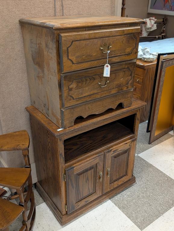 Lot 786: 2-Drawer Nightstand And 2-Door Cabinet.