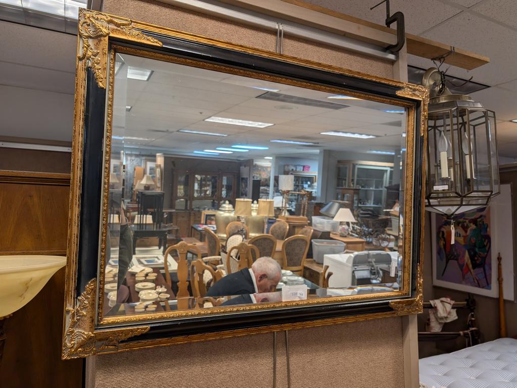 Lot 764: Black And Gilt Framed Wall Mirror. O/A: 35" X 25".