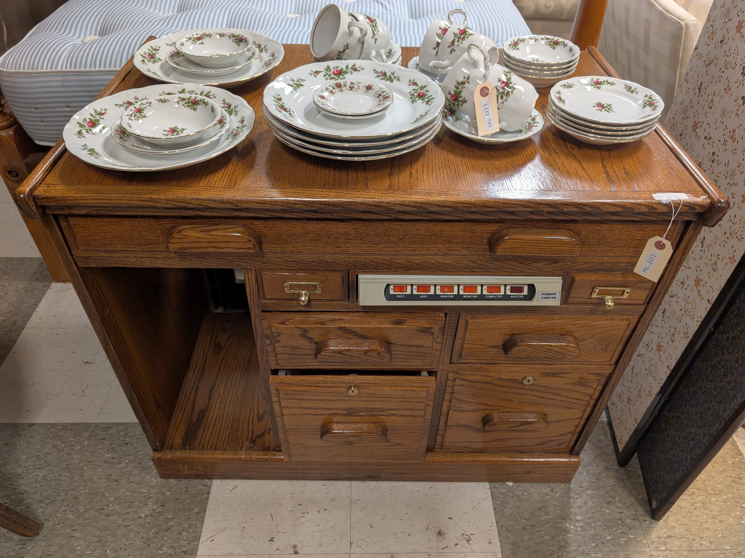 Lot 760: Oak 4-Drawer Desk And Chair.