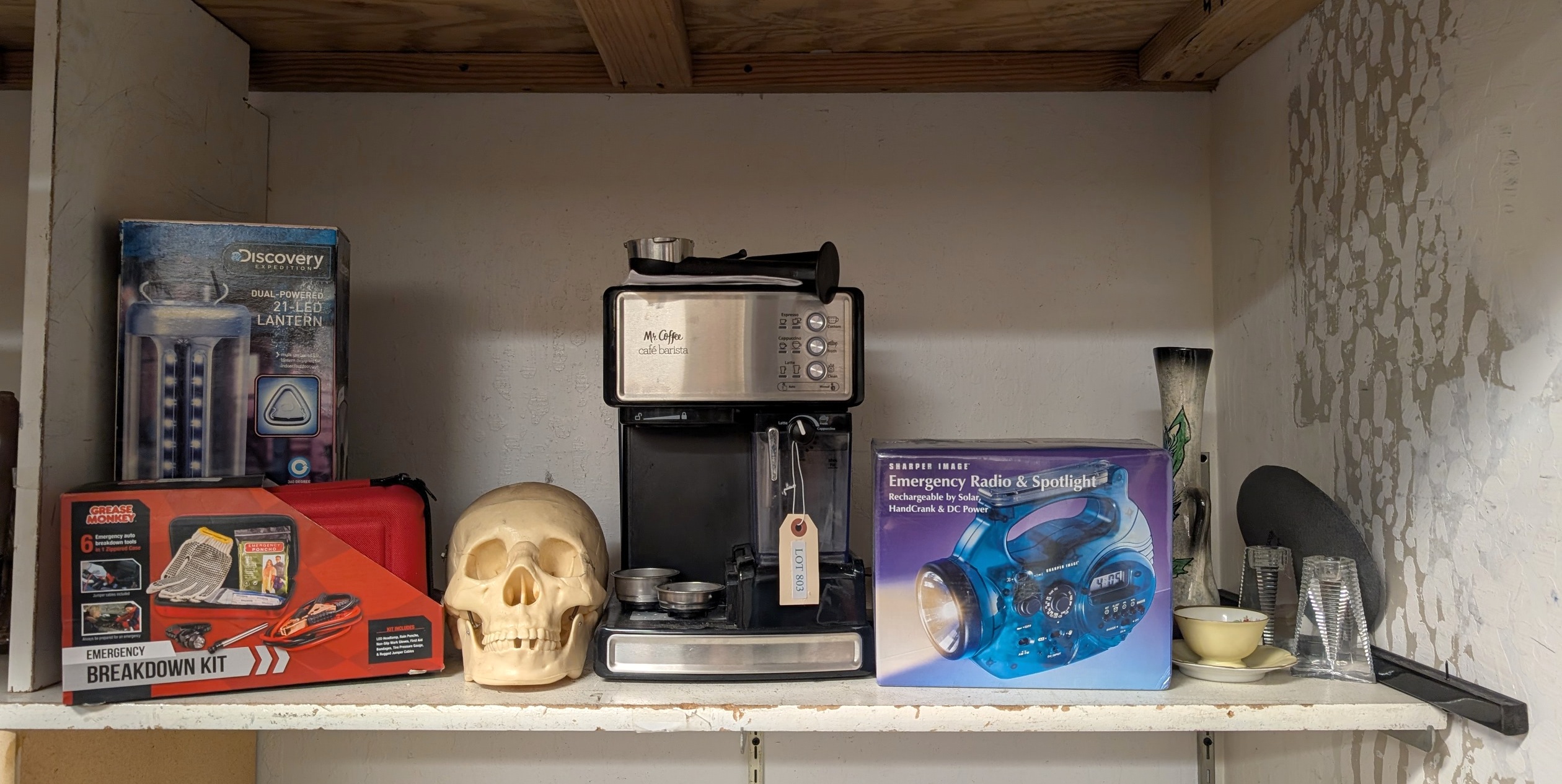 Lot 803: Shelf Of Household Items Incl. Espresso Machine.
