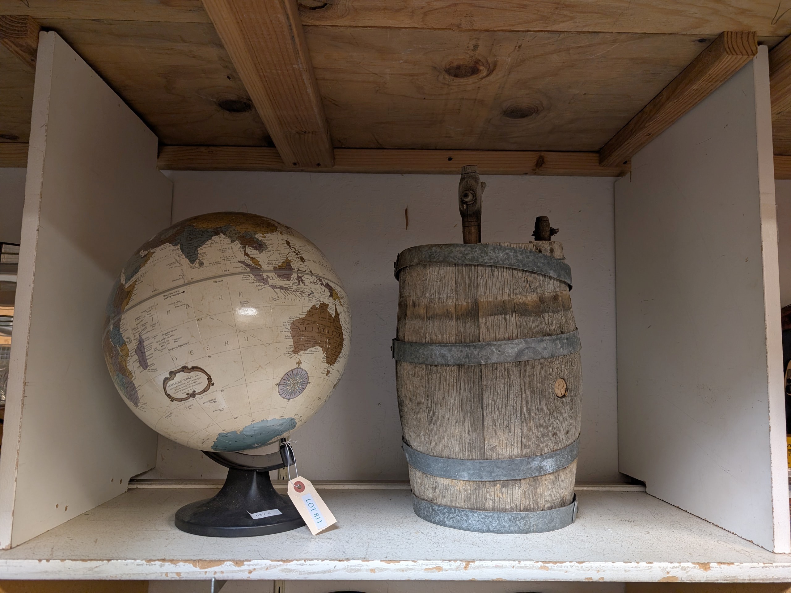 Lot 811: Globe And Wood Barrel With Metal Bands.