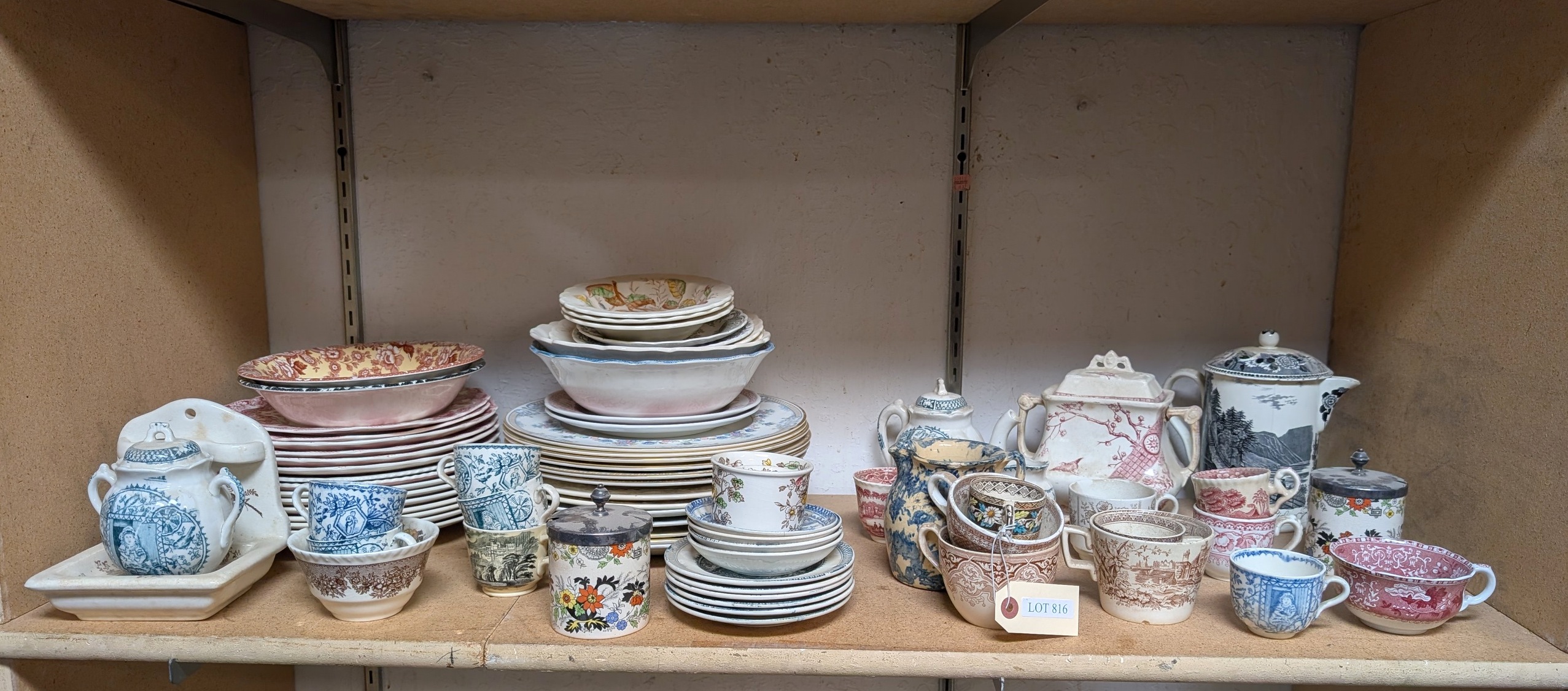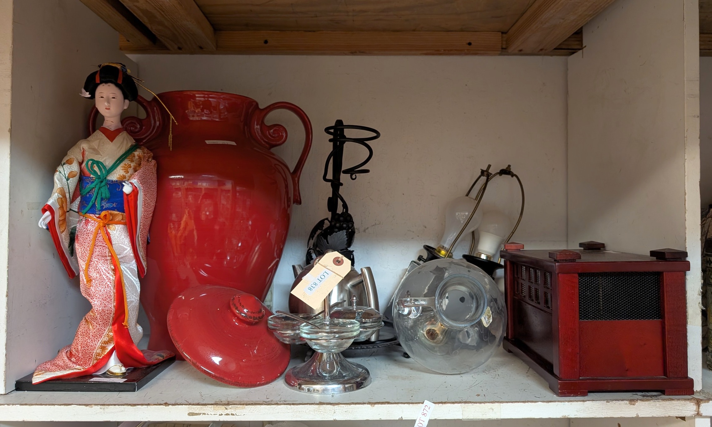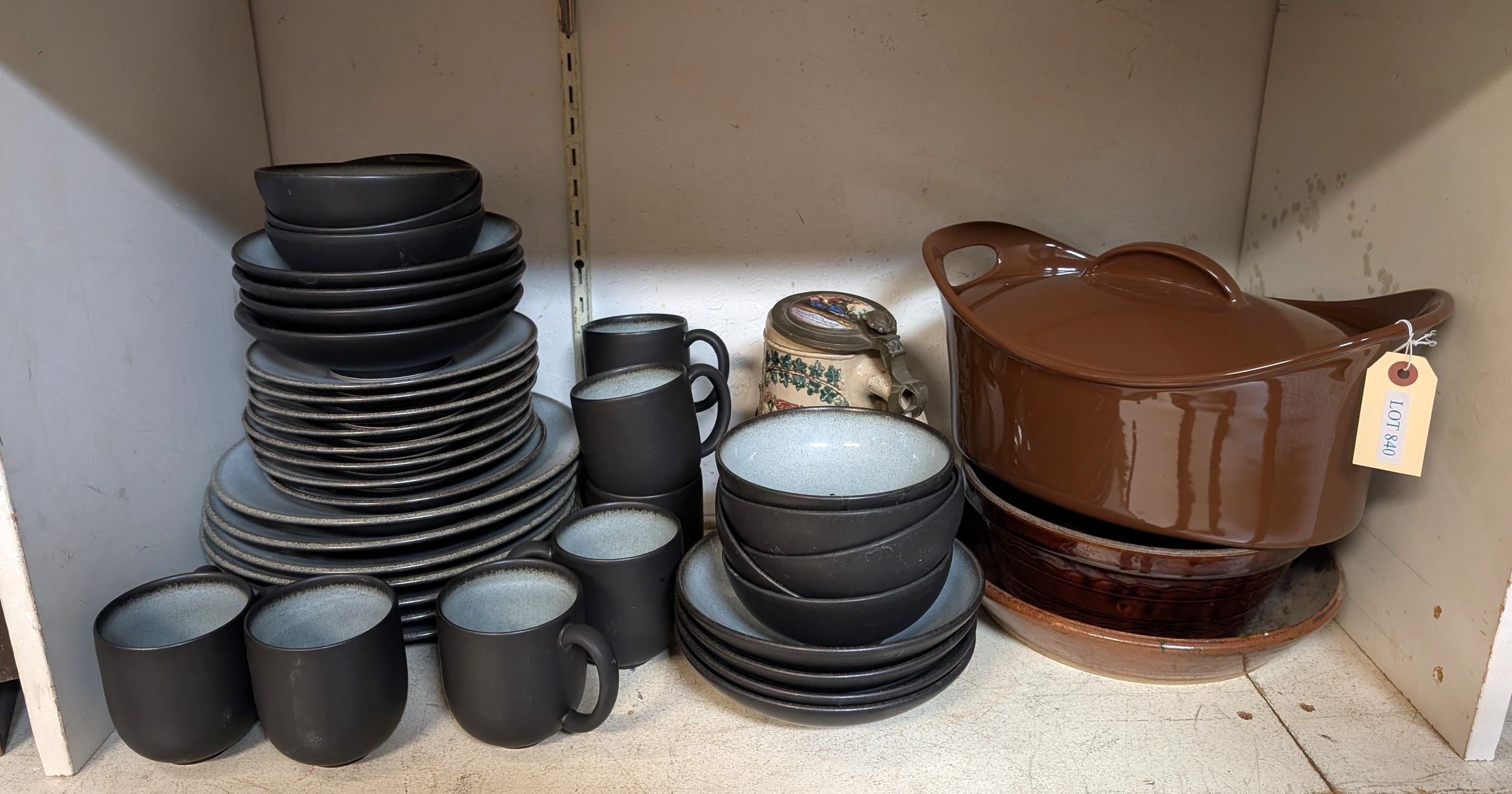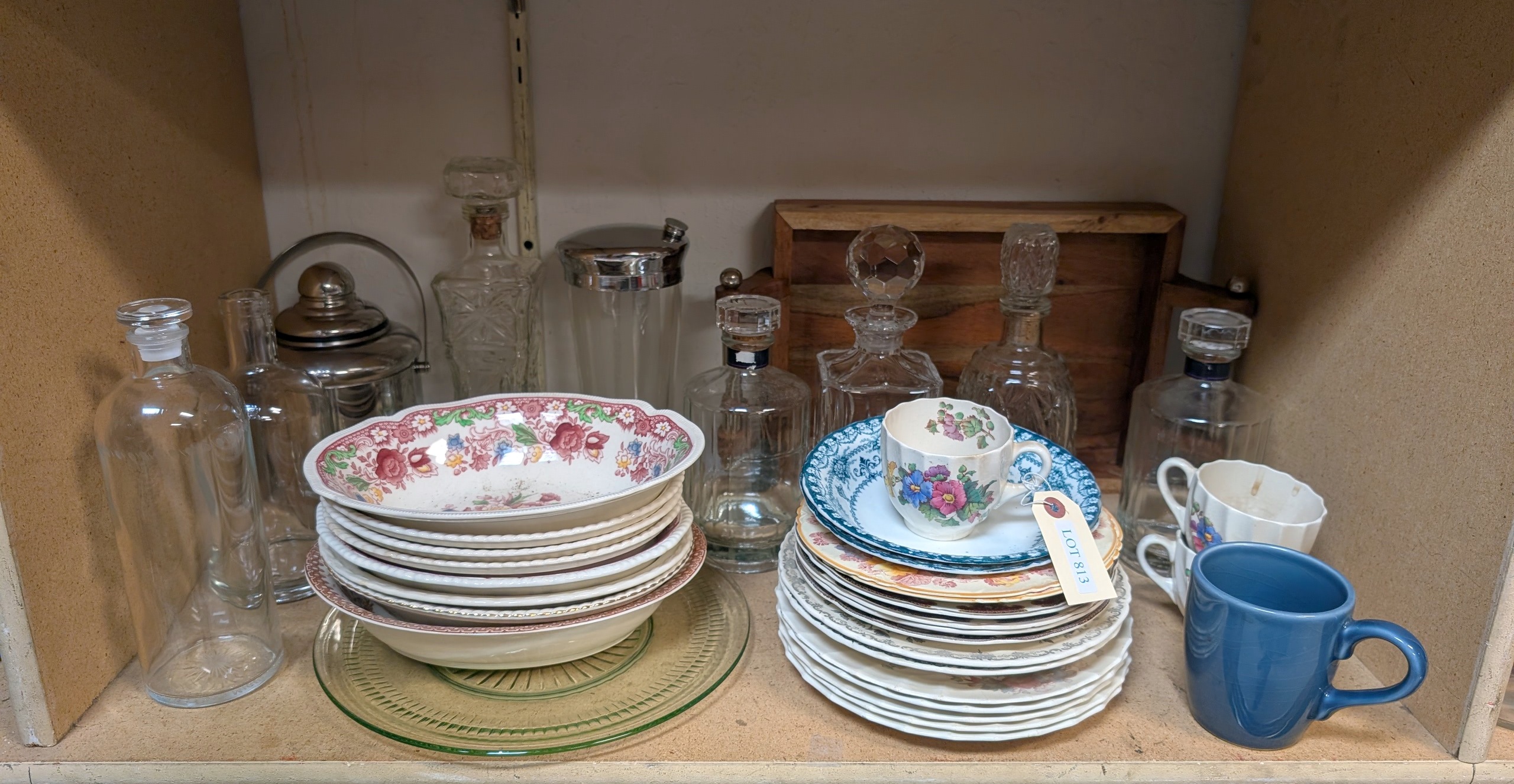 Lot 838: Shelf Of Pottery Items And Tableware.