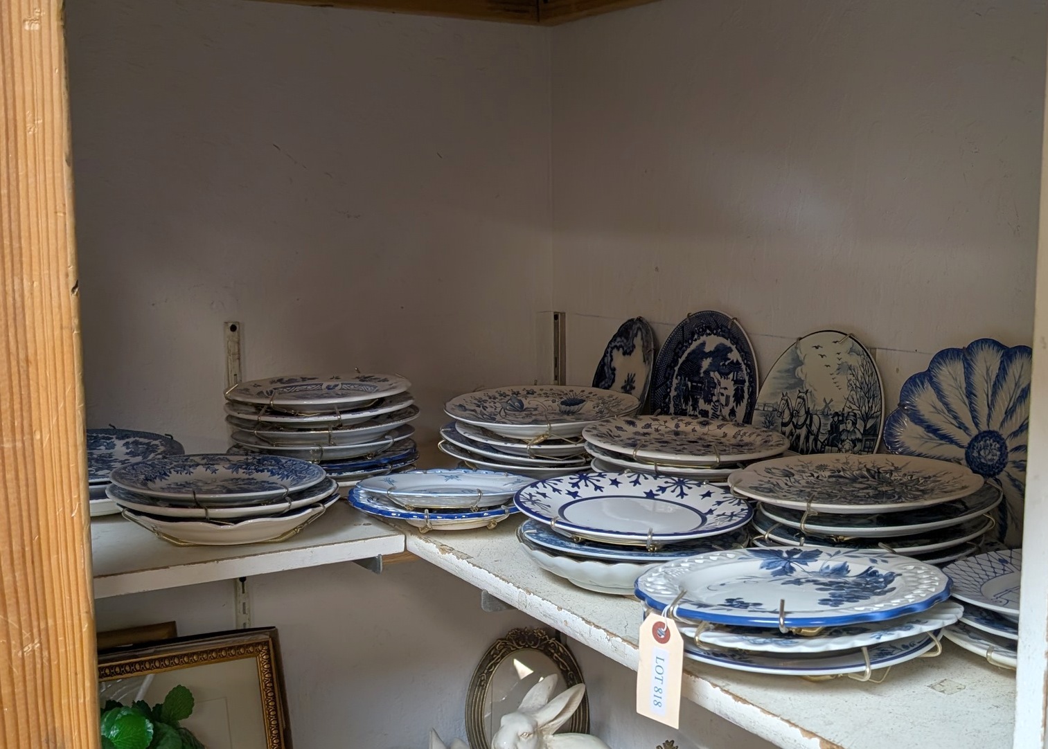 Lot 818: Shelf Of Collector Plates, Mostly Blue & White.