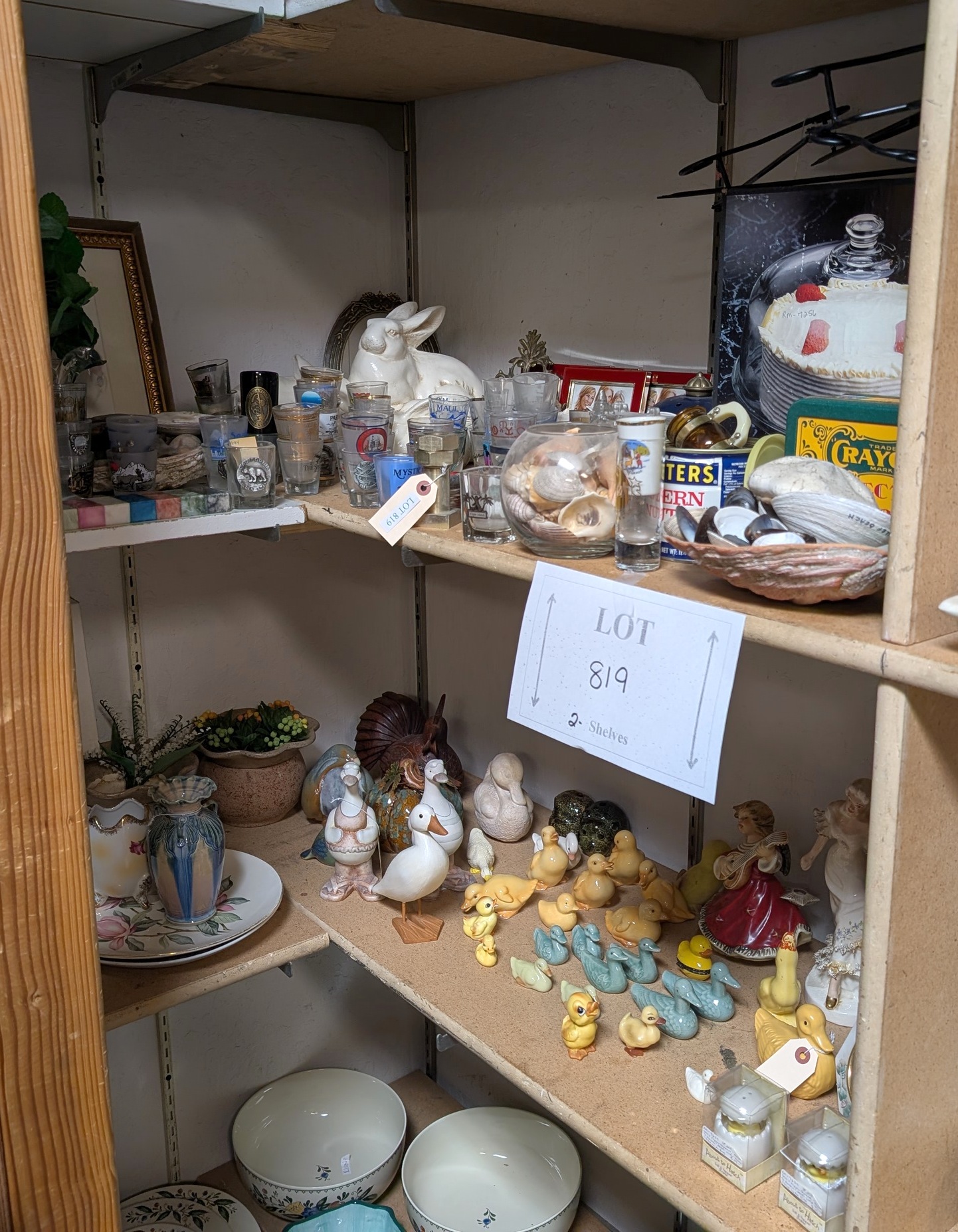 Lot 819: (2) Shelves Of Collectibles Incl. Shells, Animal Figures.