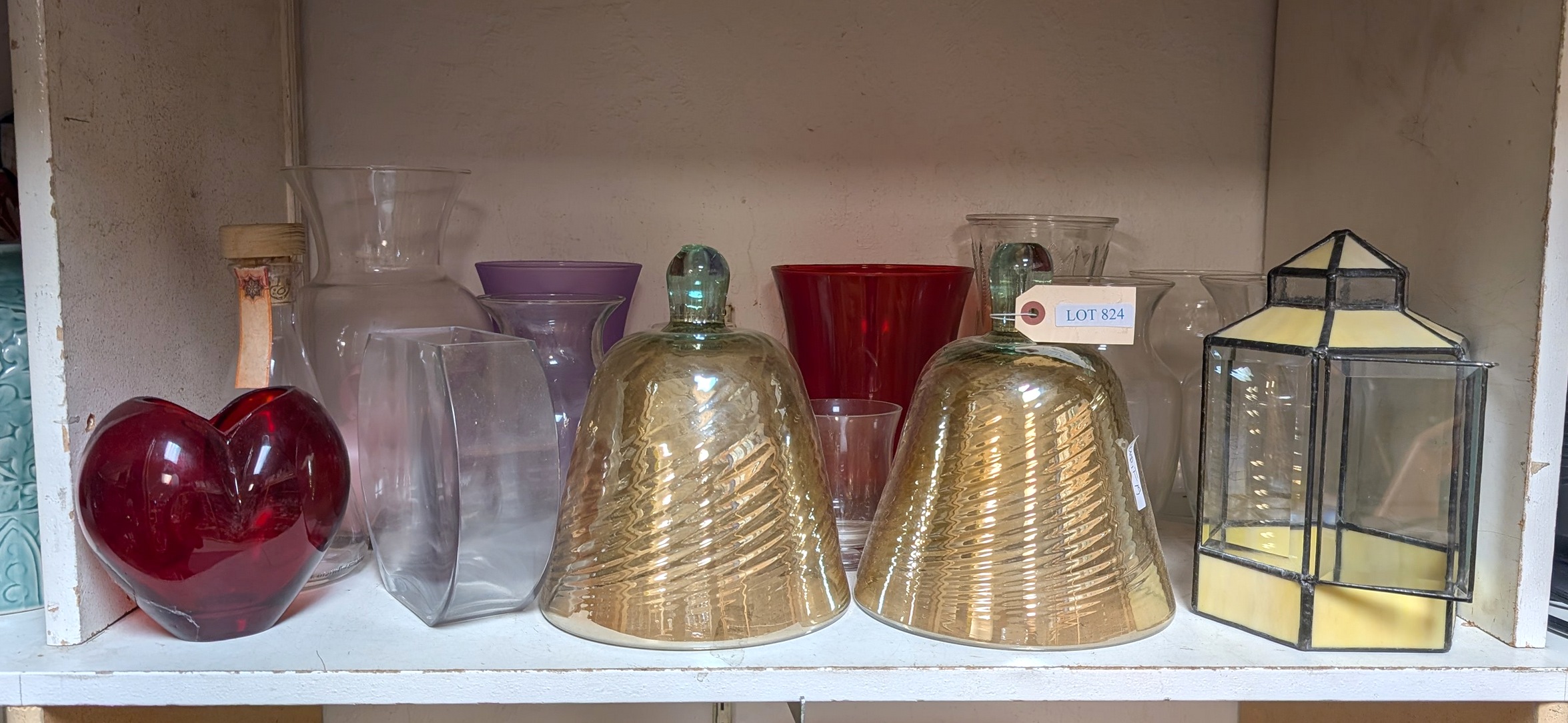 Lot 824: Shelf Of Glassware Incl. Art Glass Vase