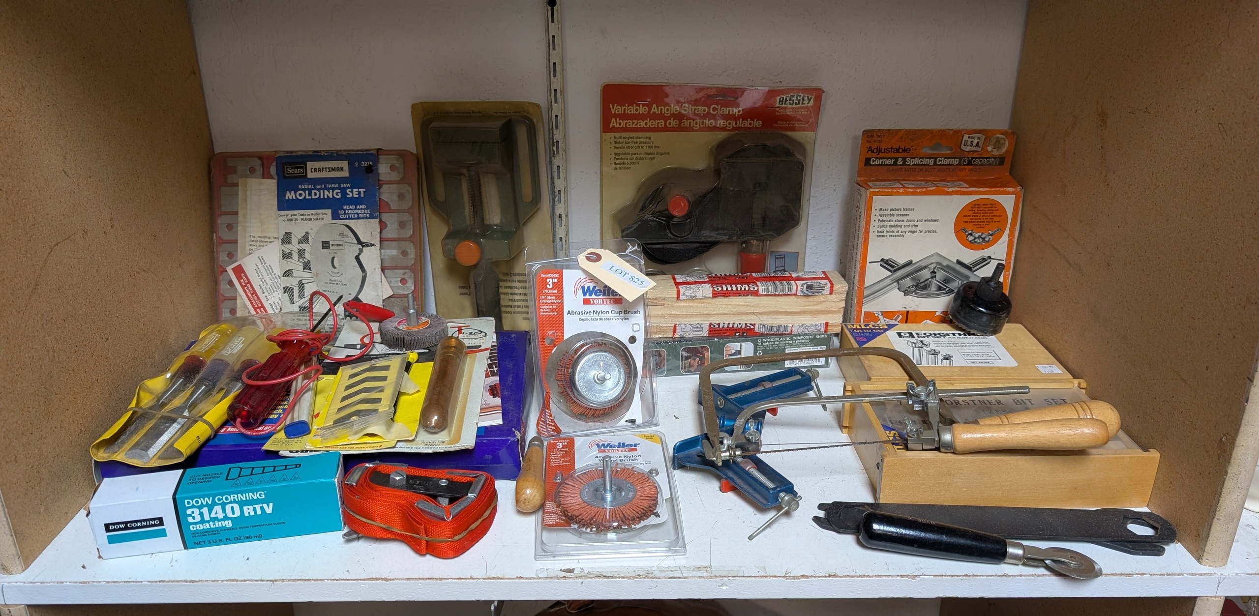 Lot 825: Shelf Of Tools Incl. Molding Set.
