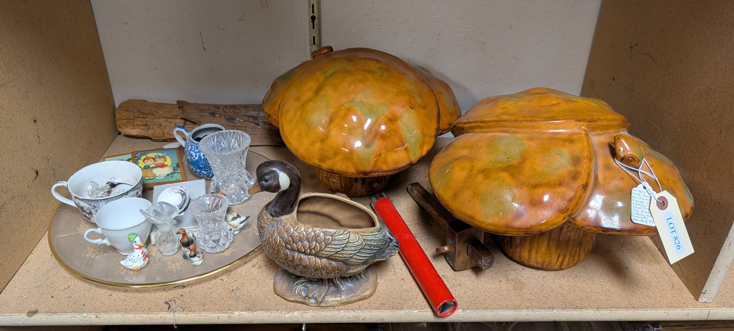 Lot 826: Group Of Knick Knacks Incl. Ceramic Mushrooms.