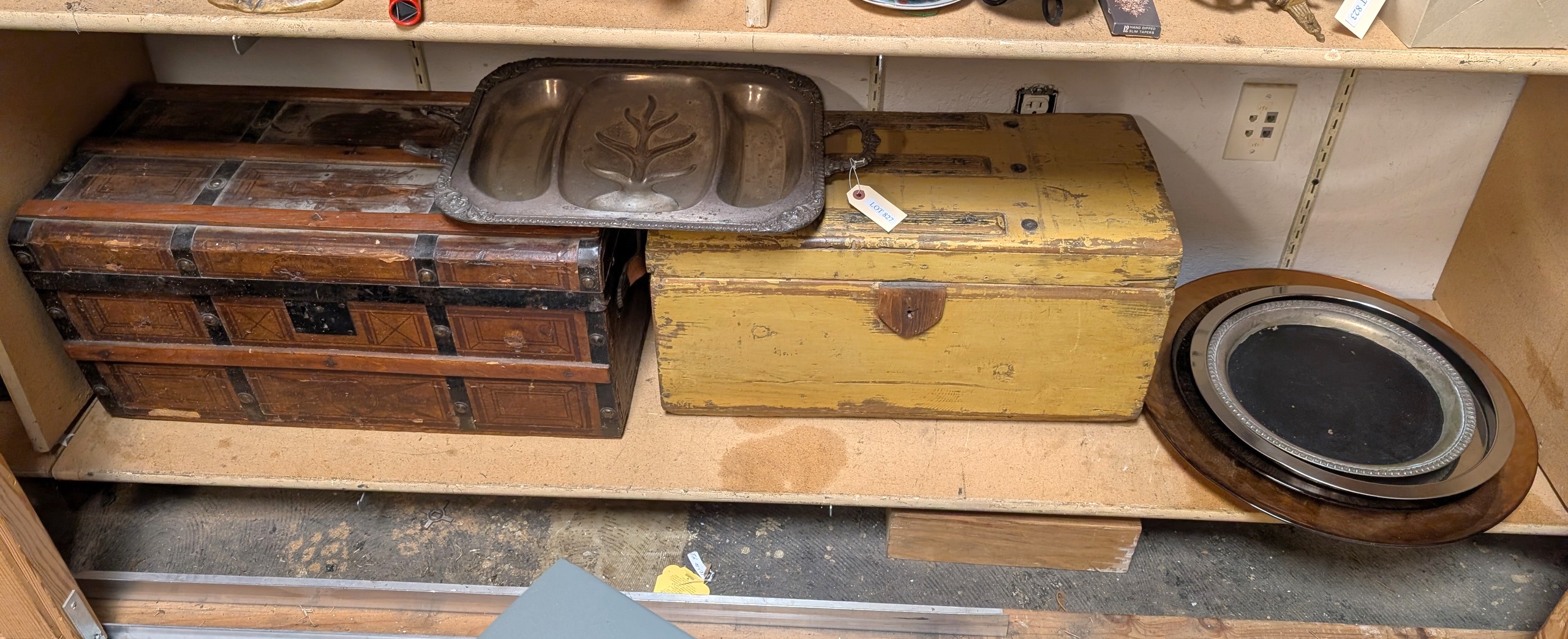 Lot 827: (2) Lidded Wood Boxes And Metal Serving Trays.