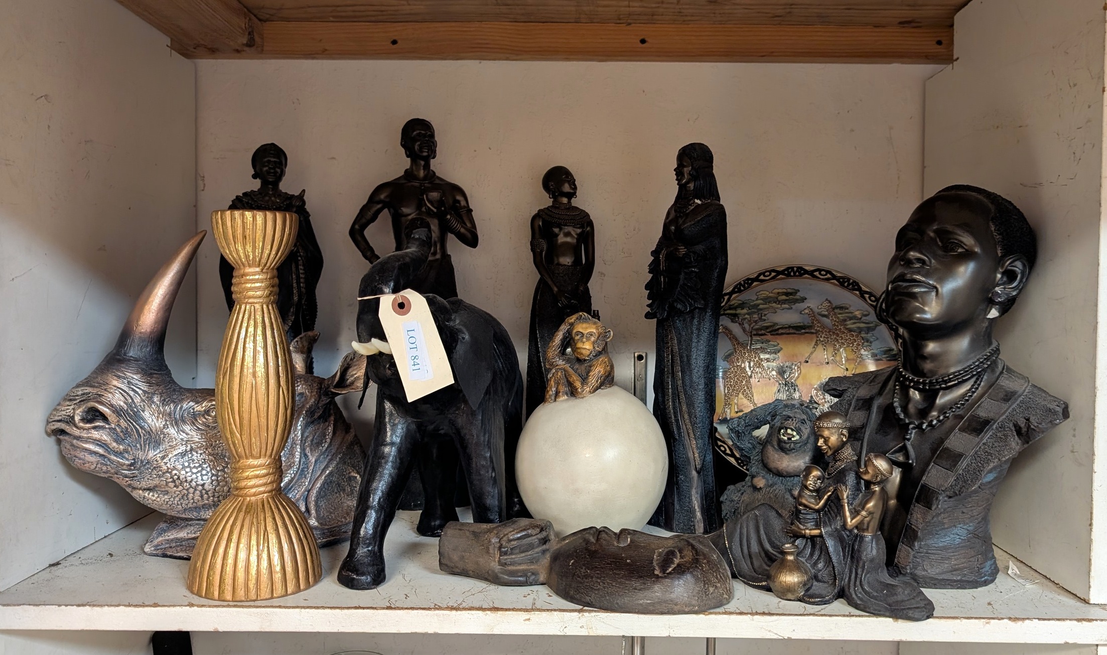 Lot 841: Shelf Of Composite Tribal And Animal Figures.