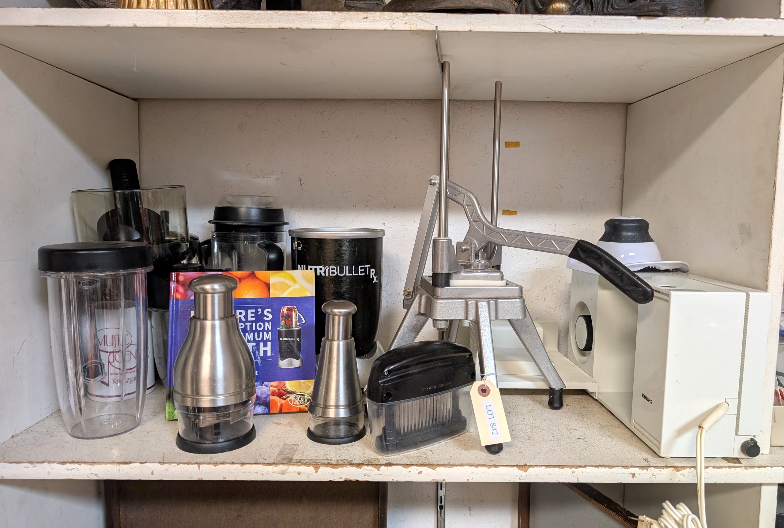 Lot 842: Shelf Of Kitchen Items Incl. Meat Slicer.