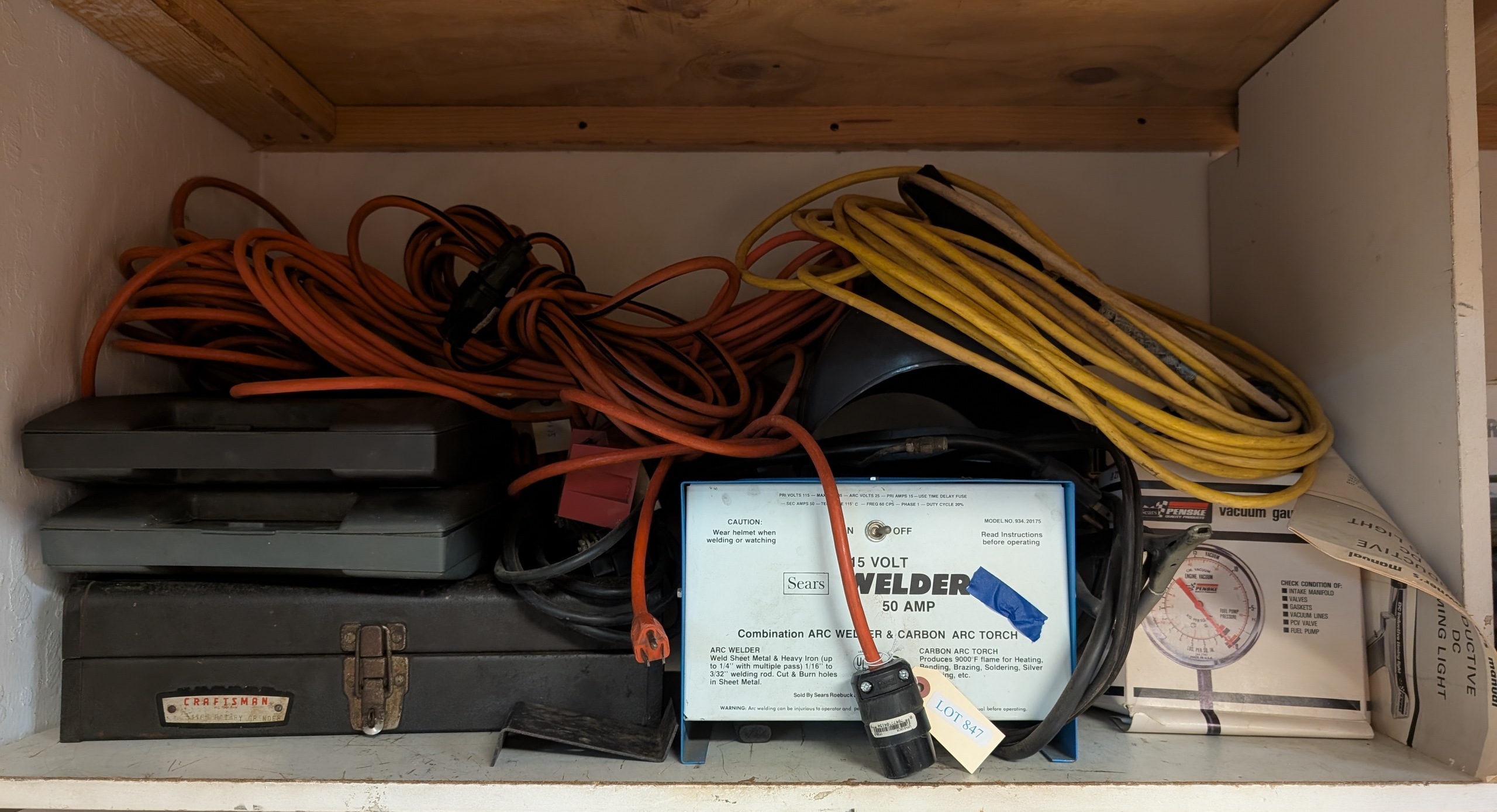 Lot 847: Shelf Of Tools Incl. 115 Volt Welder.