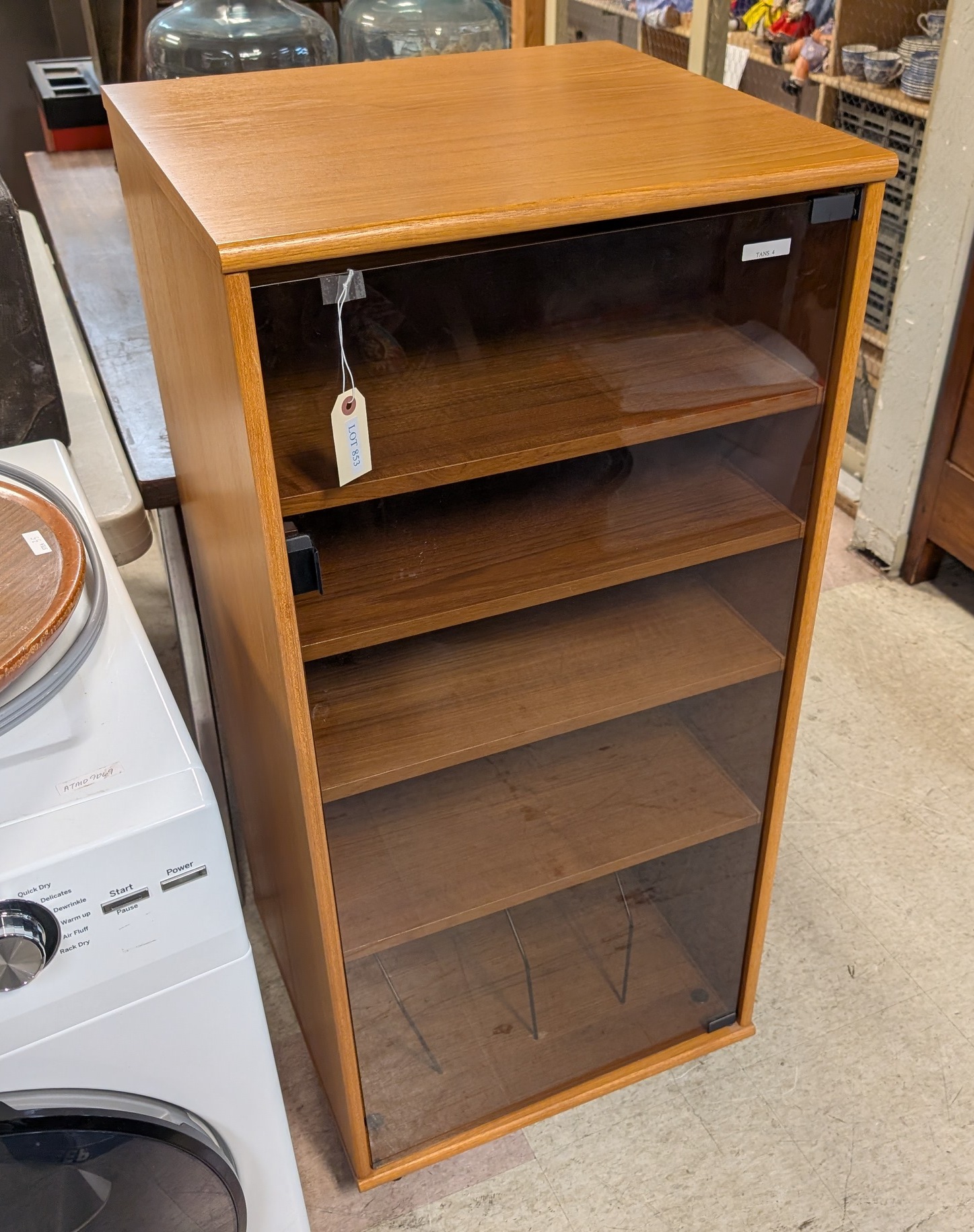 Lot 853: Teak 5-Shelf Media Center On Wheels.