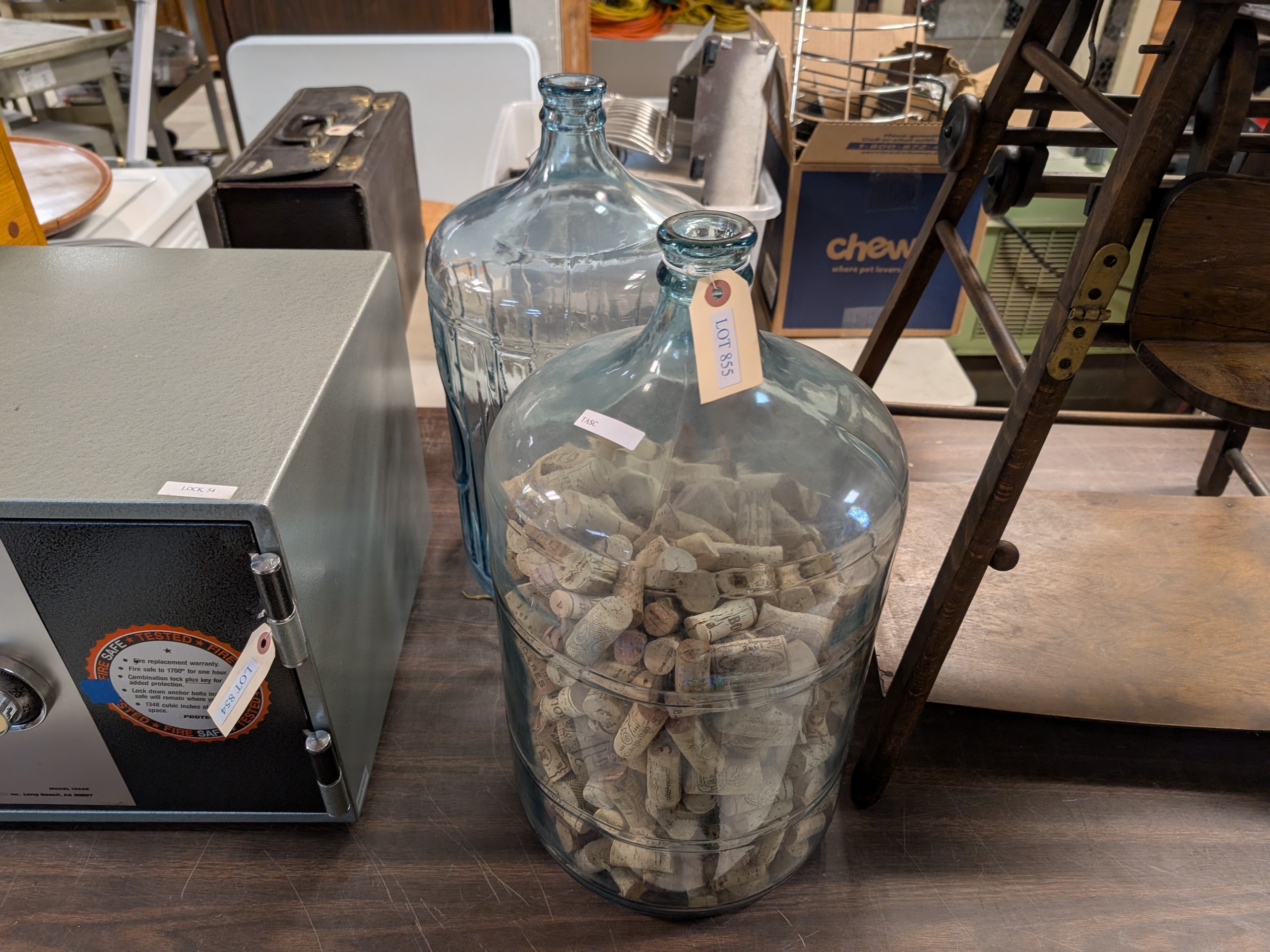 Lot 855: Pair Of 5 Gallon Glass Jars, One With Wine Corks.