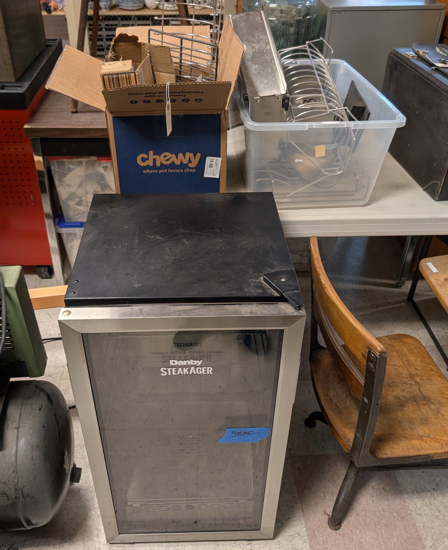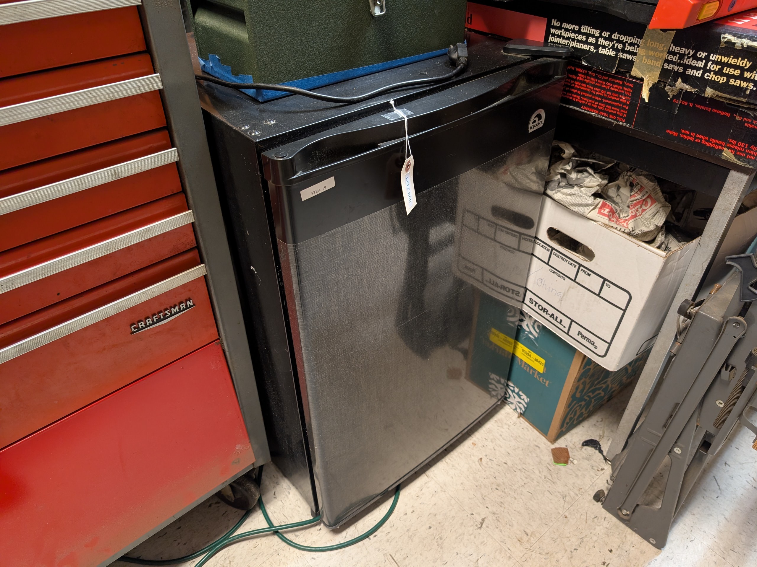 Lot 869: Danby Stakeager Mini Fridge And Kitchen Accessories.