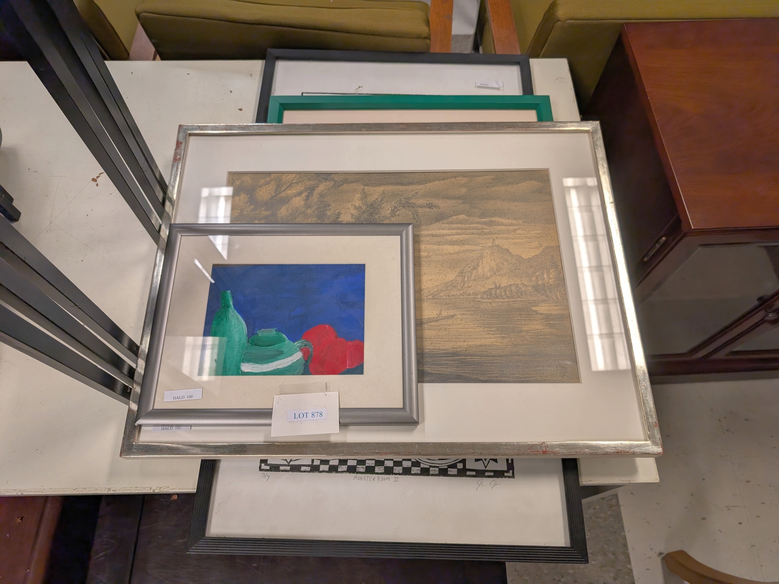Lot 878: Group Of Framed Artwork (4) Incl. Drawing, Still Life.