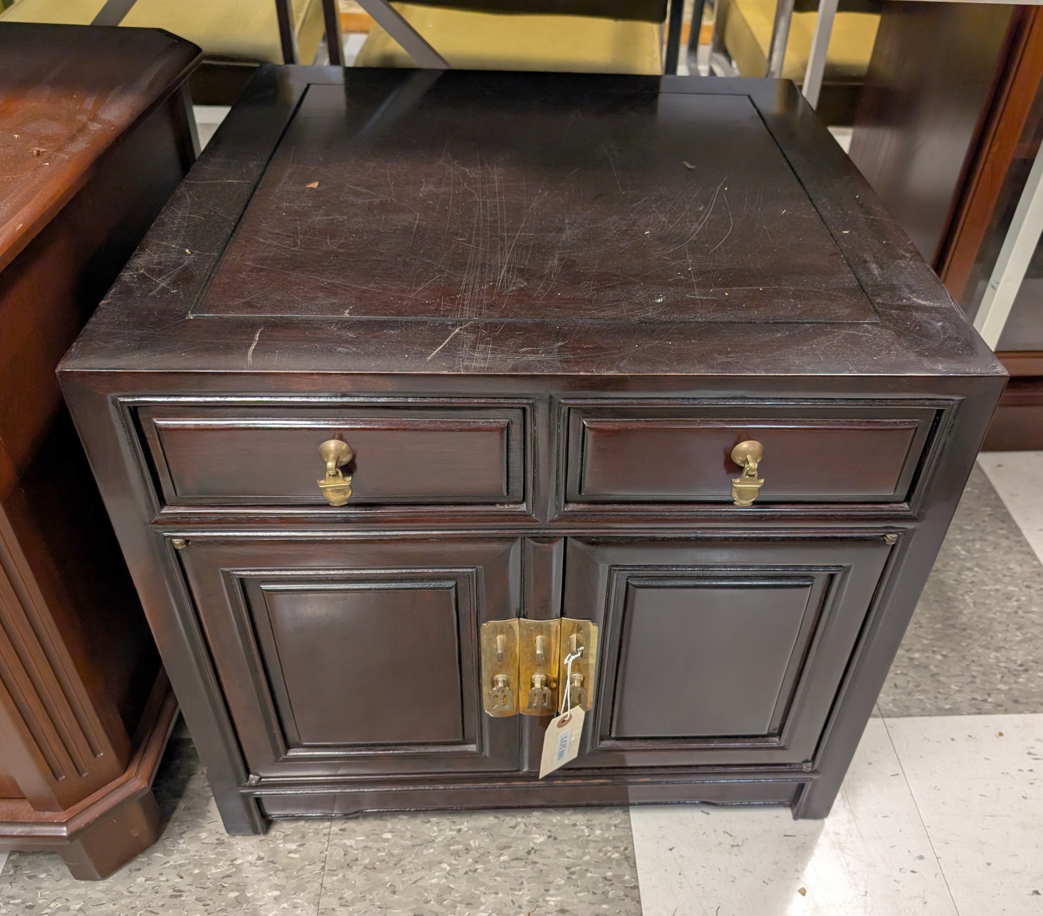 Lot 880: Oriental 2-Door, 2-Drawer Side Cabinet. 24" X 24" X 22".