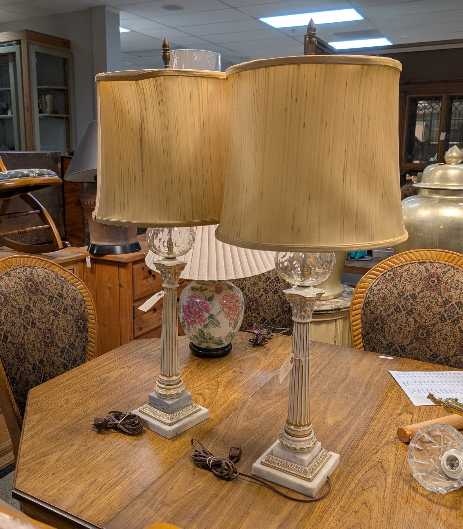 Lot 884: Pair Of Classical Column Form Table Lamps On Marble Base.