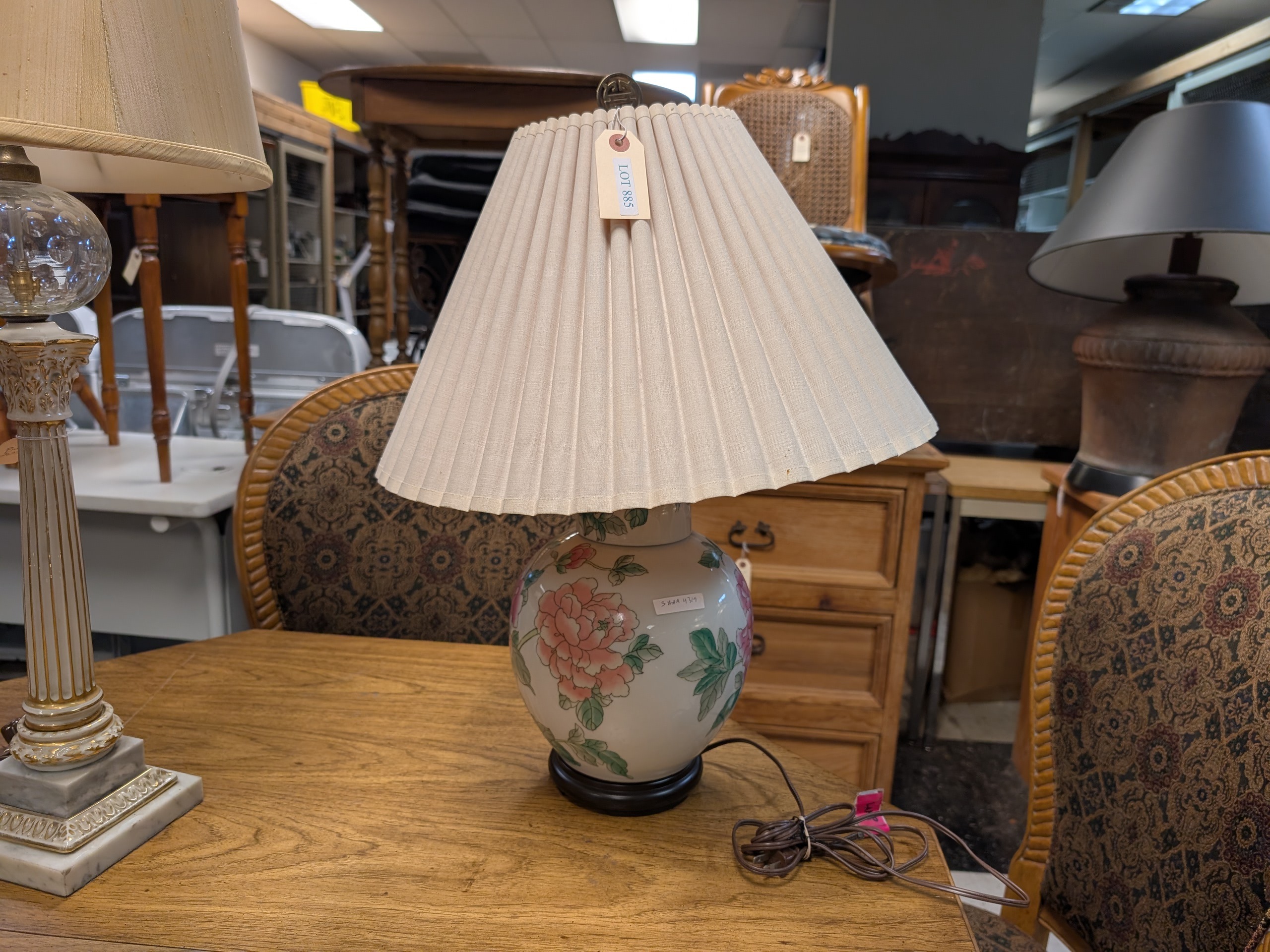 Lot 885: Asian Porcelain Table Lamp With Floral Decoration.