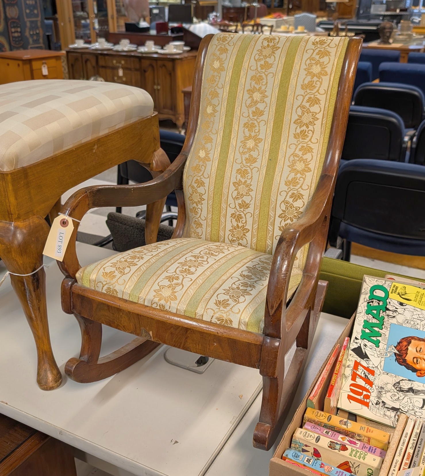 Lot 801: Jessica Charles Upholstered Armchair / Rocker.