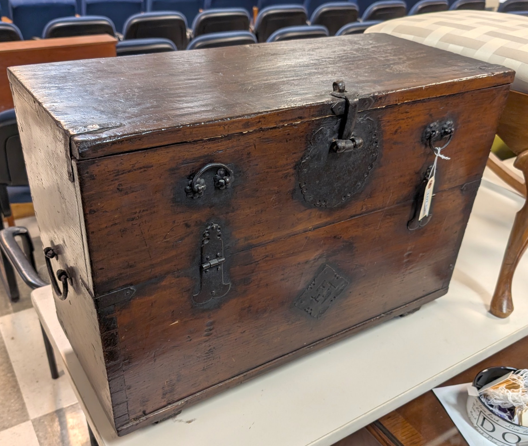 Lot 895: Asian Tansu Style Drop Front Storage Chest. 28" W, 13" D, 19" H.