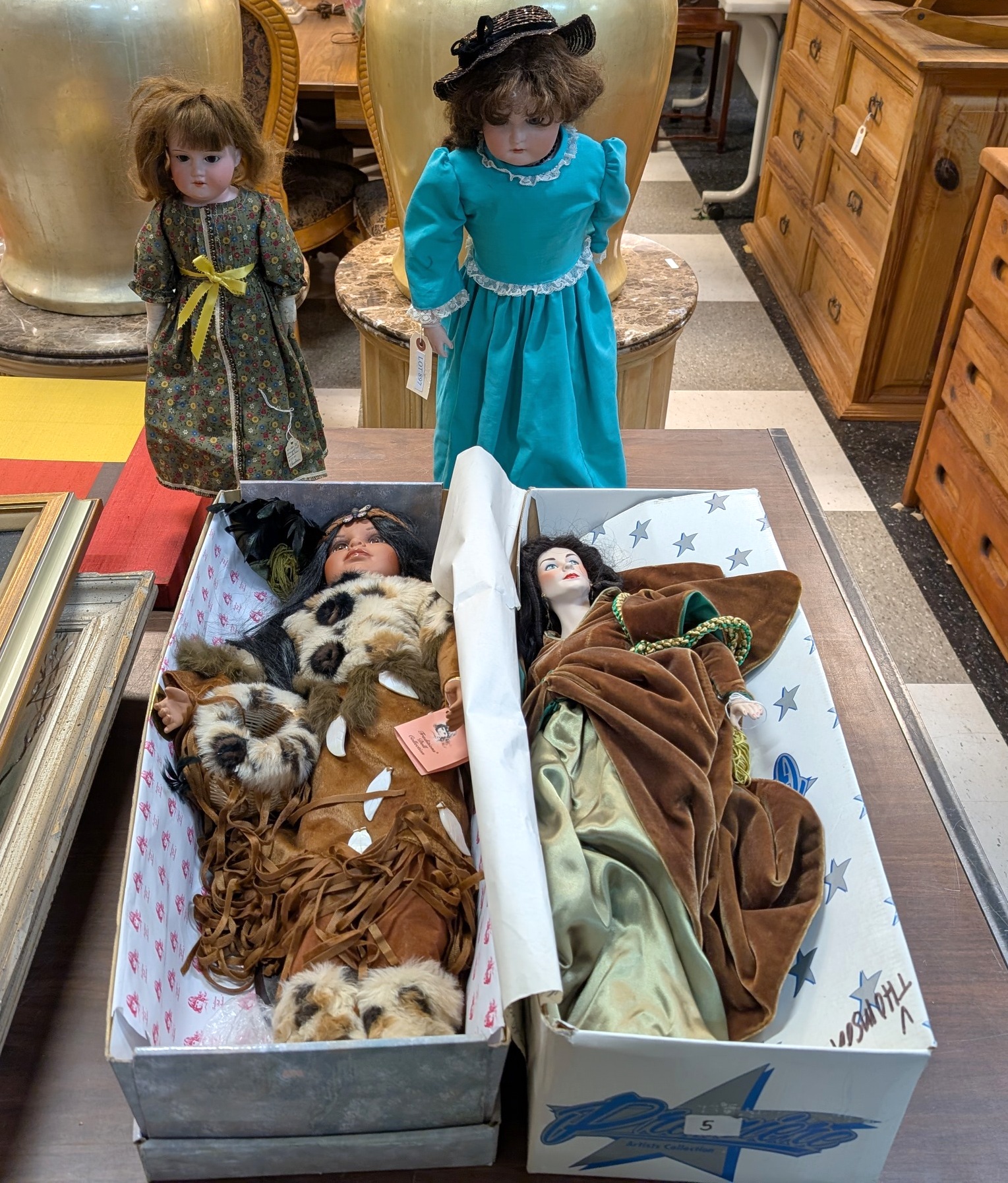 Lot 897: (2) Bisque Head Dolls And Traditions Native Doll.